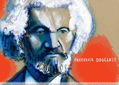 I picked up a piece of paper, and with an orange crayon roughed in the sketch of Abe using the photo as my reference… and obviously I exaggerated Abe’s leanness. This took about ten minutes. Then I used a brown ink “pen-brush” to further delineate his face, followed by darkening some lines and areas with a black pen-brush, this process taking about another ½ hour. I scanned the drawing into Photoshop where in stacked layers I painted the color digitally. (the lettering of “Abe” was also done digitally) Maybe another half hour in all. Done.